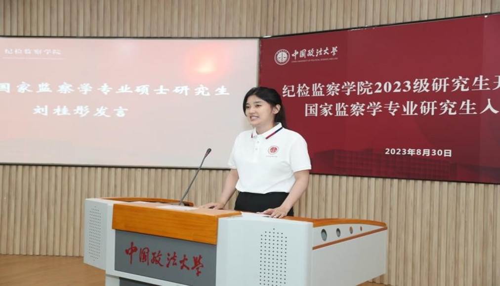 2022级国家监察学专业硕士研究生刘桂彤作为在校生代表,用“新”中有责任、“新”中有难题和“新”中有机遇三个关键词,表达自身站在发展征程新起点上的感悟,并对新同学的到来寄予美好祝愿。