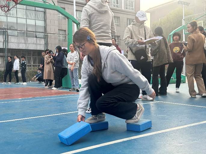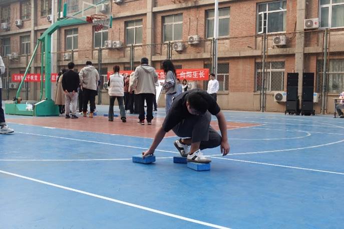 “摸石头过河”比赛对参赛队员来说是一个全新的体验,参赛队员要交替用三块砖头垫在脚下前进。正如项目名称“摸着石头过河”,比赛过程满了末知和不确定性,比赛规则看似简单,实则充满了挑战。参赛队员在摸索中一步步前进,最终斩获佳绩。
