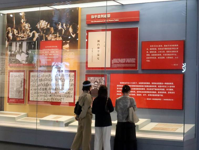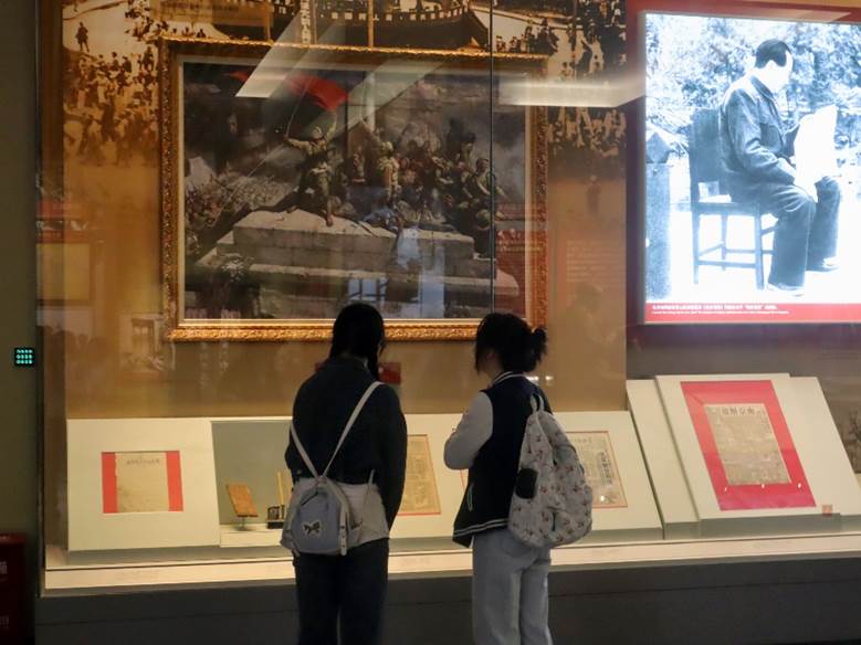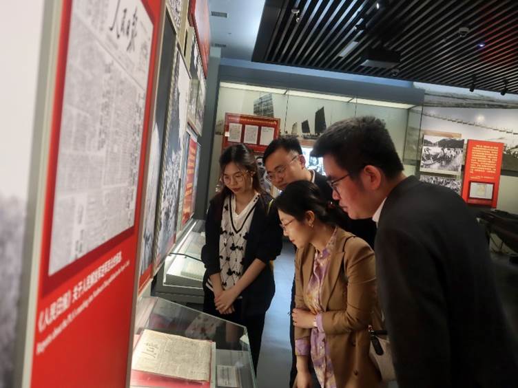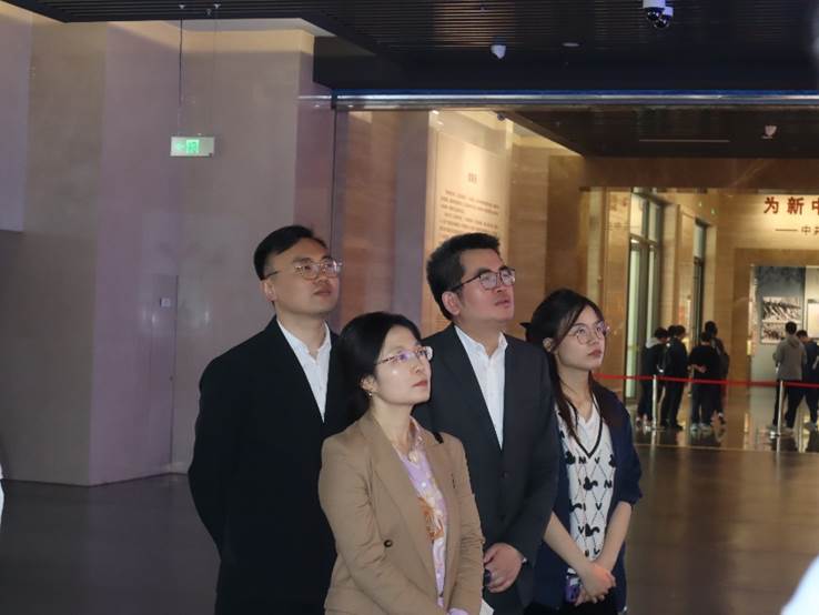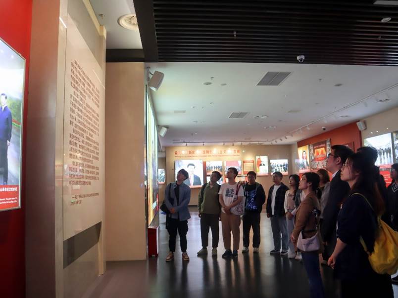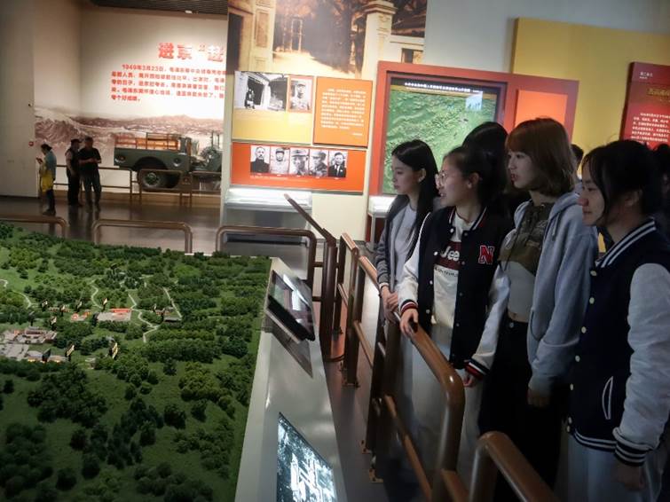 在参观的最后,全体师生党员驻足展板前,在领诵同学的带领下,集体学习习近平总书记在香山革命纪念馆参观《为新中国奠基》主题展览时发表的重要讲话。同学们纷纷表示,要深入学习党史、新中国史,传承红色基因,继承和发扬老一辈革命家“赶考”的精神、执政为民的情怀和艰苦奋斗的作风,像习近平总书记要求的那样,“继承和发扬老一辈革命家谦虚谨慎、不骄不躁、艰苦奋斗的优良作风,始终保持奋发有为的进取精神,永葆党的先进性和纯洁性,以‘赶考’的清醒和坚定答好新时代的答卷。”