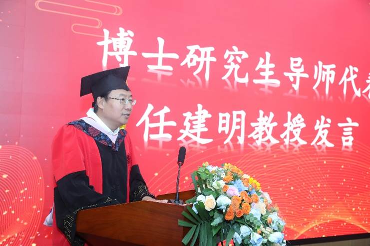 博士生导师代表和硕士生导师代表分别上台发言。任建明教授在发言中,向毕业生们表示了热烈的祝贺,并引用毛主席在七届二中全会上的讲话,勉励同学们不忘初心,继续前行。他强调,作为禁漫
