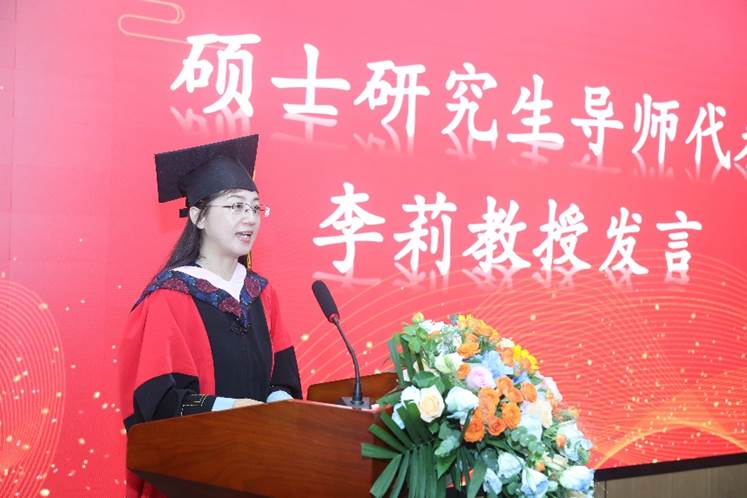 李莉教授则以“后盾”为喻,表达了对毕业生们的殷切期望和美好祝愿。她表示,无论毕业生们未来走向何方,母校和学院都将是他们最坚实的后盾,永远为他们提供支持和帮助。