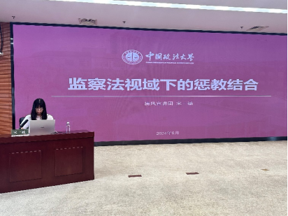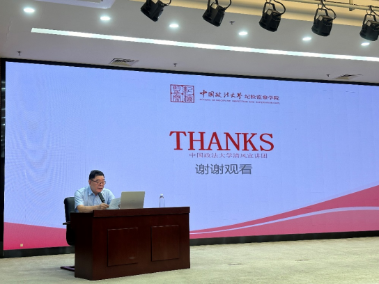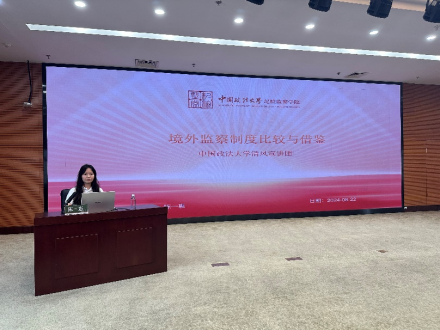 最后,陈一惠作题为《境外监察制度比较与借鉴》的主题宣讲,以全球视角深入剖析了不同国家和地区监察制度的独特之处与借鉴意义。宣讲内容分为三部分:第一部分从历史沿革、监察法律体系、监察机构以及职能权限等维度梳理了四个地区的监督制度;第二部分由点及面地总结出境外监察制度的总体特点;在第三部分中,她将中外监察制度进行对比,阐明我国监察制度在依法治国、依宪治国理念指导下,实现了对所有行使公权力的公职人员监察全覆盖,体现了党的集中统一领导与制度优势,也为全球监察制度的创新与发展提供了宝贵的中国方案。