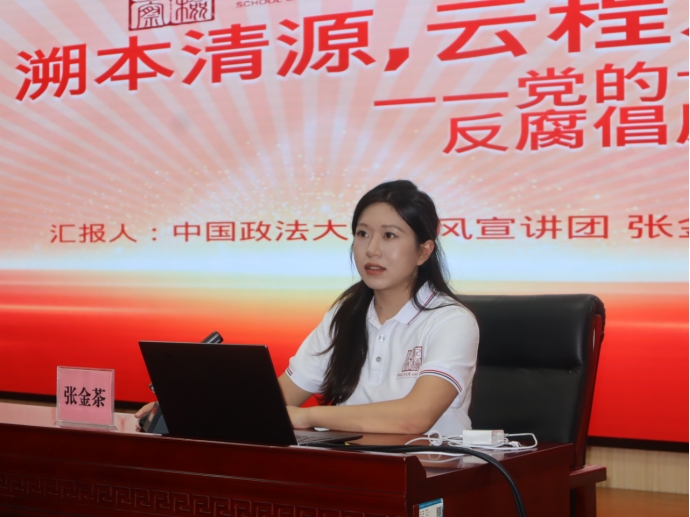 首先,张金茶作了题为《党的十八大以来我国反腐倡廉治理的新发展》的主题宣讲。她以“如何跳出治乱兴衰的历史周期率”的第二个答案作为切入点,围绕党的二十届三中全会精神,以及党的十八大以来我国纪检监察体制改革的发展,梳理了十八大以来党和国家监督体系的发展以及通过建国以来纪委发展的历史脉络来进一步阐明纪检监察体制改革的变与常,进一步揭示了其背后的深层逻辑与规律。最后,她分析论述了十八大以来全面从严治党所取得的历史性、开创性成就,从制度构建到实践执行,从党员干部的思想自觉到行动自觉,都发生了根本性的变化,这彰显了党中央坚定不移推进全面从严治党的决心和勇气。