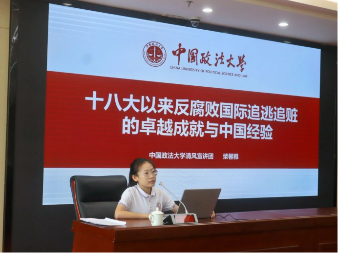 硕士研究生柴馨雅作了题为《十八大以来反腐败国际追逃追赃的卓越成就与中国经验》的主题宣讲。首先,她聚焦习近平反腐败国际追逃追赃思想,从反腐败国际追逃追赃的意义、立场、原则、工作方法与配套措施五个方面展开阐述。随后,她依托党的十八大以来中国在反腐败国际追逃、追赃及防逃方面的丰富实践,通过一系列生动鲜活的案例与详实准确的数据,生动展现了我国在这一全球性挑战中取得的卓越成就。最后,她剖析了“宽严相济”与“震慑与感召相结合”两大策略在中国反腐败国际追逃追赃工作中的运用,揭示了其中蕴含的中国智慧与中国方案,为台下党员干部深刻理解我国在全球反腐败治理中的贡献与影响力提供了一个立体且多维的视角。