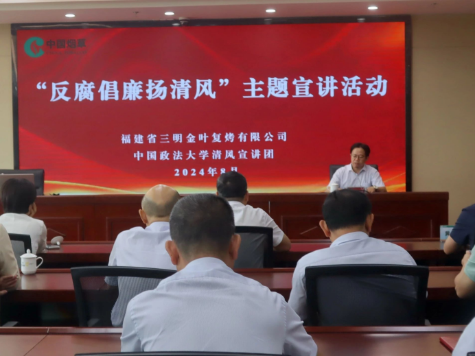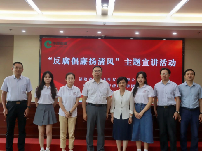 清风宣讲团成员、福建烟草省局实习生张金茶、柴馨雅、陈一惠受邀到福建省三明金叶复烤有限公司开展“反腐倡廉扬清风”主题宣讲活动。