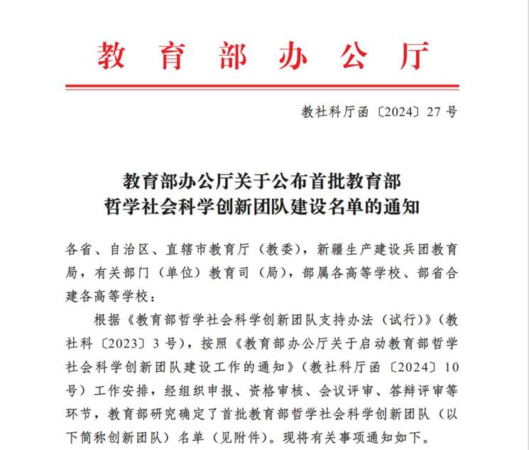 据了解,创新团队建设是贯彻落实习近平总书记关于哲学社会科学的重要论述和在全国教育大会上的重要讲话精神的重要举措,首批计划在全国范围内遴选认定了34个创新团队,建设周期为3年。