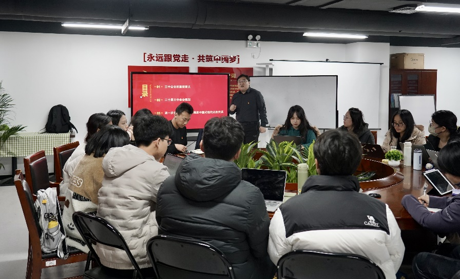 硕士研究生第一党支部的党员同学们共同学习研讨党的二十届三中全会精神。