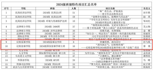 2024级硕士“清风扬正气,纪检铸班魂”和“崇廉固善,清风同行”两个班级特色项目均获得立项支持。