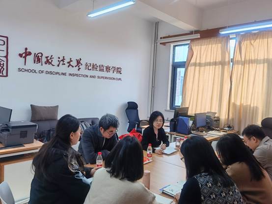 何为”。随后,参会的各位教师党员依次围绕这一主题,结合自身的教学、科研工作,分别就纪检监察人才培养中的学习资料库建设、本科生和研究生课程建设、青年教师和博士后的科研成长、学生工作的完善等主题作了交流发言。最后由学院党总支书记何欣做总结发言,为各位教师党员未来更好地开展纪检监察教学科研工作提出了两点要求:一是要苦练教学基本功,站稳讲台,重视纪检监察人才培养;二是要做到思想上的充实,坚定理想信念,方可真正做好纪检监察教学科研工作。