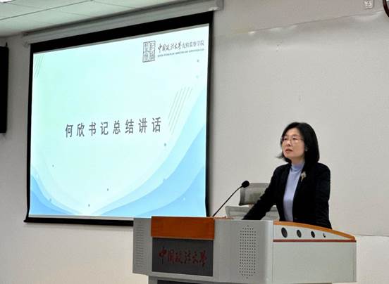 何欣做总结讲话。她指出,“清风伴我行”主题分享会是学院“清风领航”计划的重要部分,旨在通过定期邀请在各方面表现卓越的学子,结合自身成长经历和学业规划,以经验分享会的形式,解答在校研究生在学业、就业及个人职业生涯规划等方面遇到的困惑,实现信息资源的共享与互通,发挥示范引领作用,以达到鼓励并激发同学们不断优化个人发展路径的目的。本次在寒假前召开的分享会恰逢其时,为同学们指明了前行的方向,希望同学们及时确立未来发展的目标,夯实基础,勤奋学习,充分利用时间提升自己。最后,何欣对放假前及寒假期间的学生安全、宿舍管理等工作进行专题部署,要求同学们高度重视,有序离校,确保假期安全。