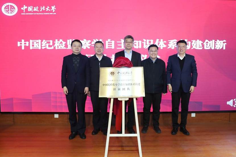 会议期间,教育部高等教育司副司长武世兴、教师工作司副司长黄小华、社会科学司副司长宋凌云、姜泽廷、我校校长马怀德为我校教育部首批哲学社会科学创新团队“中国纪检监察学自主知识体系构建创新团队”揭牌。