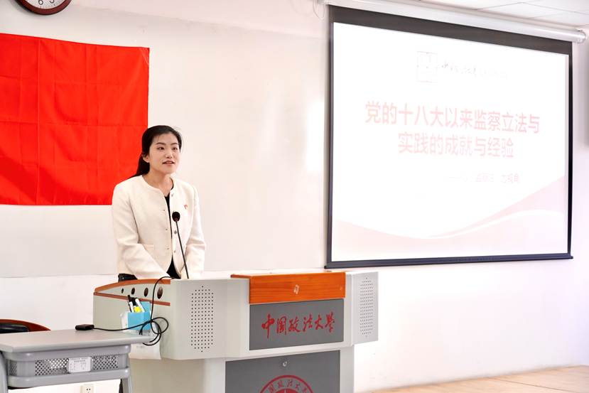 “清风宣讲团”成员胡佳茵围绕《党的十八大以来监察立法与实践的成就与经验——以<监察法>为视角》作主题宣讲,详细阐述了党的十八大以来监察立法的理论创新、监察实践的主要经验、反腐倡廉的历史性成就,让大家深刻感悟到我国纪检监察体制改革的丰硕成果和法治建设的铿锵足音。
