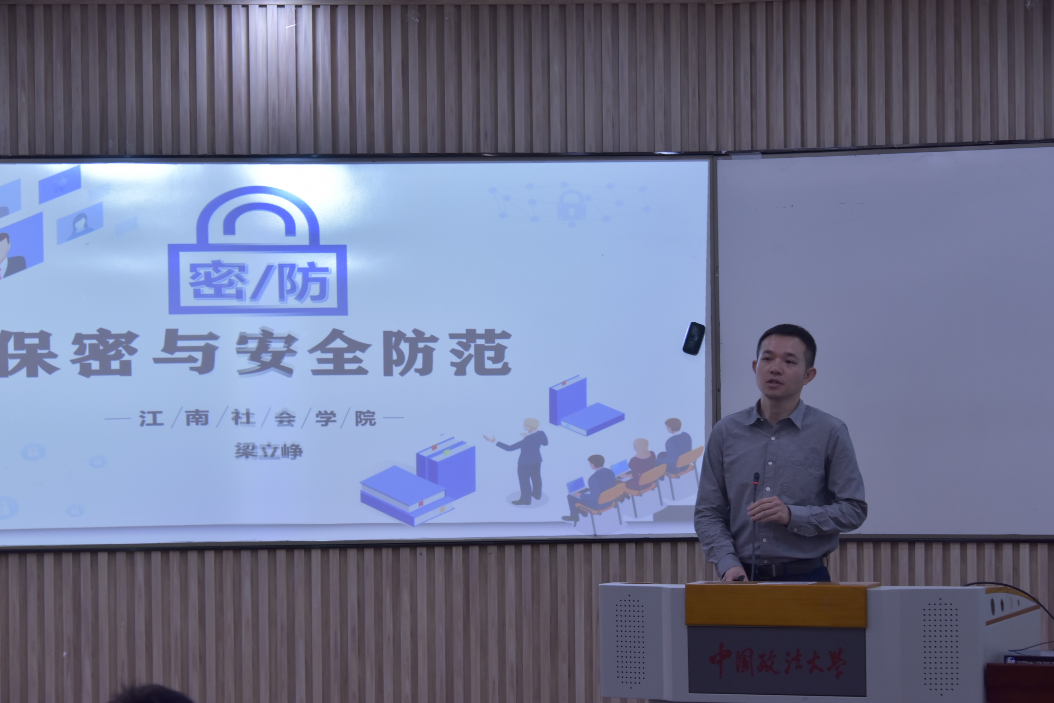 教师师德师风建设,增强全体师生的国家安全意识、政治纪律观念和保密工作能力,严守网络安全和舆情管控,提高对纪检监察工作保密性的理解认识,5月17日,学院党总支邀请江南社会学院三级高级调查员、副教授梁立峥,举办《保密与安全防范》专题培训讲座。学院全体教职员工、研究生导师和在校本科生、研究生参加培训。