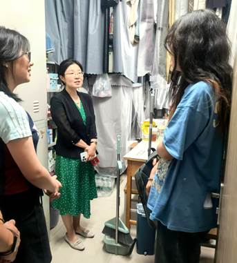 走访中,何欣一行细致查看宿舍环境,并重点围绕“清风雅室”宿舍文明共建活动的开展与同学们深入交流。老师们认真听取了同学们对活动开展情况的反馈,并就如何优化活动方案、完善管理规范、提升文明氛围等关键问题,广泛征求了学生们的宝贵意见和建议。何欣强调,“清风雅室”建设是营造良好育人环境、促进学生全面发展的重要载体,需要师生同心协力,共同维护与提升宿舍文明水平。