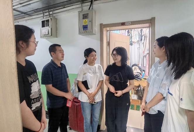 辅导员徐宝国、杨璐一深入学生宿舍,亲切看望刚结束训练的参训学生,并就暑期宿舍安全及离校返程事宜进行专项检查和细致叮嘱。