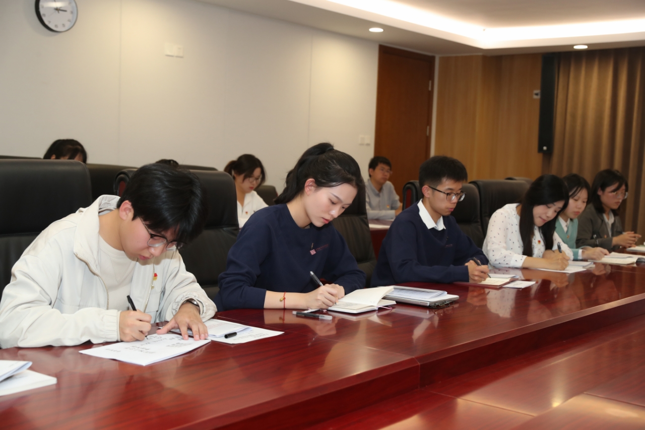 党员发展对象曾倩、唐子惠以《坚定初心跟党走》和《开足马力,在新的征程上挺膺担当》为题开展思想汇报。硕士研究生张嘉柔、本科生夏誉菡分享“朋辈引航 廉润新苗”结对共建的感想。