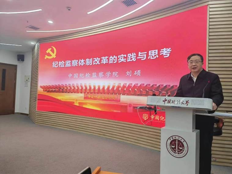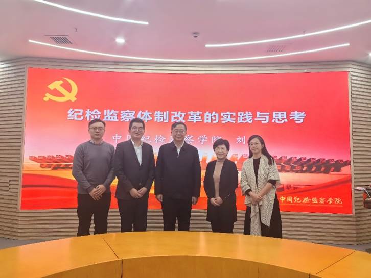 刘硕书记以《纪检监察体制改革的实践与思考》为题,深入阐述了纪检监察体制改革的内涵要义、实践要求以及个人的深刻认识和思考。他首先指出要通过回归改革的初心来理解制度设计的背景和基点,思考什么是构建集中统一、权威高效的中国特色国家监察体制。其次,刘硕书记从根本目的、目标要求和正确把握纪法关系等方面对纪检监察体制改革的实践展开了详细地阐述。最后,刘硕书记指出,我们应联系党的十八大以来的具体实践和党的二十大精神,努力学出“五个气”:自信底气、创新锐气、百姓地气、政治勇气和时代朝气。