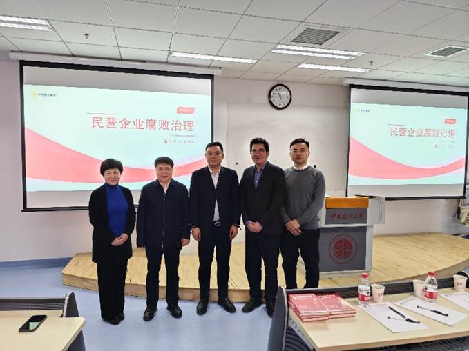 常保国副校长为讲座致辞。他期待与京东集团监察部深化交流与合作,促进纪检监察学科理论与实践的紧密结合,并携手助力民营企业廉洁合规体系的发展与繁荣。